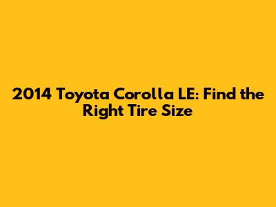 2014 Toyota Corolla LE: Find The Right Tire Size