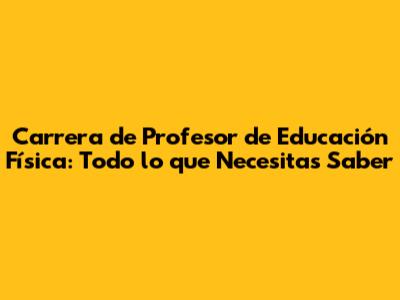 Carrera De Profesor De Educación Física: Guía Completa