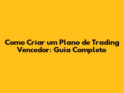 Como Criar Um Plano De Trading Vencedor: Guia Completo