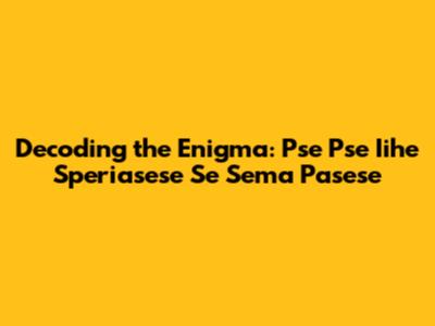 Decoding Pse Pse Iihe Speriasese Se Sema Pasese