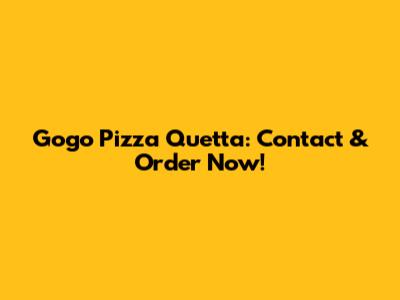 Gogo Pizza Quetta: Contact & Order Now!