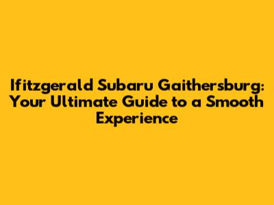 Ifitzgerald Subaru Gaithersburg: Your Go-To Guide