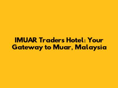 Hey guys! Planning a trip to the charming historical town of Muar, Malaysia? If you are, you're in for a treat! And, if you're looking for a comfortable and convenient place to stay, you've probably stumbled upon the IMUAR Traders Hotel. Let's dive deep into what makes this hotel a great choice for travelers. We'll explore everything from its location and amenities to the overall guest experience, ensuring you have all the info you need to make your stay in Muar unforgettable. This hotel could be your home away from home while you're exploring the beauty of Malaysia.