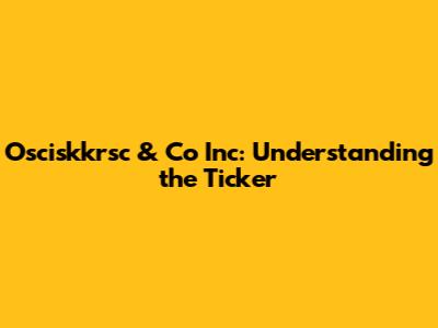 Osciskkrsc & Co Inc: Understanding The Ticker