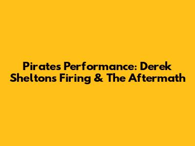 Pirates' Performance: Derek Shelton's Firing & The Aftermath