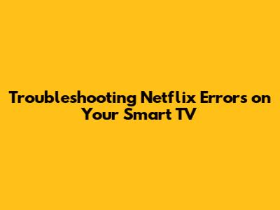 By following these step-by-step solutions for Netflix errors on your Smart TV, you should be able to resolve most common issues and get back to enjoying your favorite movies and shows without interruption. Happy streaming!